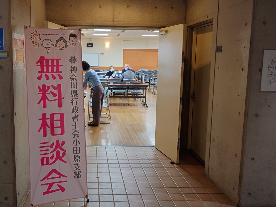 私の所属している神奈川県行政書士会小田原支部では、域内で定期的に無料相談会を実施しています。皆様の身の回りでのご心配事、お困り事などありましたら、お近くで実施されている無料相談会をご活用ください。
