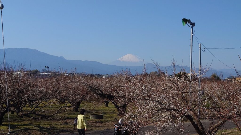 この陽気なら、と、その足で小田原・下曽我の梅林へ。予想通り、かなり開花が進んでおり、木によってまちまちですが、早いものは5・6分咲きくらいでした。富士山を背景にした絶景を是非ご覧ください!