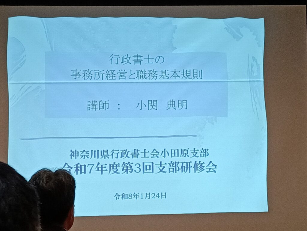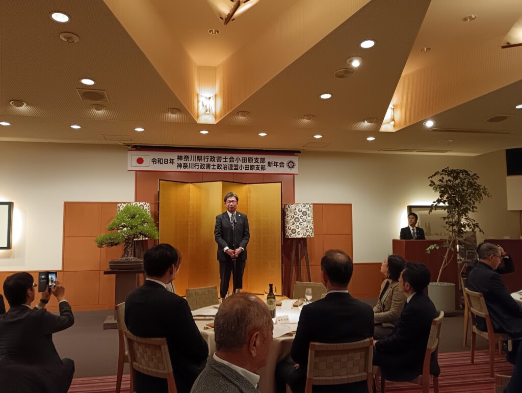 1月24日、寒気の影響で先週水曜日あたりから冷え込み、この日も風が強く、寒さが堪える日でしたが、行政書士会小田原支部の研修会と新年会が報徳会館で行われました。